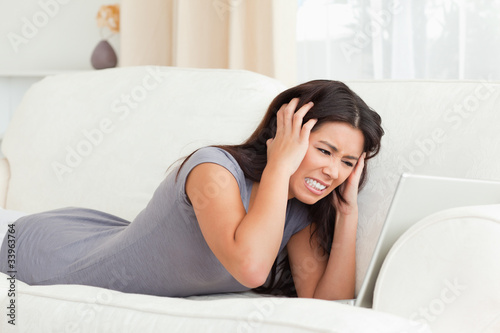 angry, asian, brunette, free time, cyberspace, notebook, relaxation, surfing, woman, young, beautiful, casual attire, cheerful, chilling, comfort, communication, computer, connection, couch, cute, down, dress, female, girl, happiness, happy, keyboard, laptop, leisure, lifestyle, living, lounge, network, online, people, portrait, pretty, recreation, relax, rest, resting, sitting, smile, sofa, technology, web, white, wireless, work
