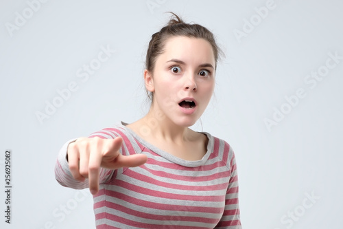 woman, angry, anger, finger, pointing, annoyed, negative, caucasian, indexed, girl, lady, 1, person, studio, angrily, annoyance, bad, depressed, displeased, face, feeling, crabby, shock, mad, outraged, sulk, pouting, sad, serious, shouting, sulk, threaten, unhappy, upset, amazement, astonished, disbelief, girlfriend, indignation, individual, indoor, omg, posing, puzzled, scared, scarey, shocked, shocking