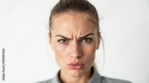 woman, portrait, closeup, angry, expression, tense, glaring, eye, face, feature, emotion, frustration, anger, rage, furious, upset, irritated, displeased, wrath, rancor, fierce, intense, feeling, human, female, adult, person, facial, expressionless