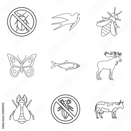 Animal kingdom icons set, outline style
