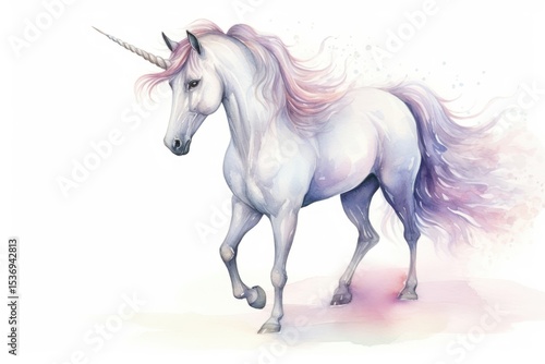 domestic animals, illustrated, watercolor, background, creativity, hand-drawn, one animal, watercolor, farm animal, off-white, half face, fast horse, cartoon, drawing, unicorn, animal, mammal, nature, vignetting, horse, paint, mane, pink, art, illustration