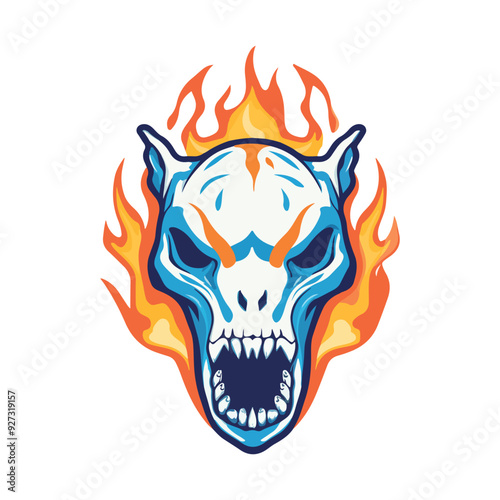 animal skull vector with burning fire