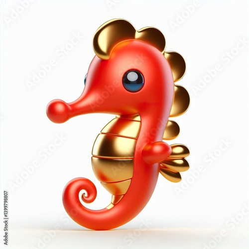 three-dimensional, animation, character, cute, design, seahorse, red, gold, white, background, digital, illustration, animal, fantasy, marin, ocean, underwater, colourful, cartoon, adorable, artwork, graphic, creature, render, style, vibrant, glossy, bright, children, fun, toy, decorative, smooth, shiny, fish, aquatic, imaginary, magical, elegant, whimsical, charming, soft, lively, playful, sculpture, model, realistic