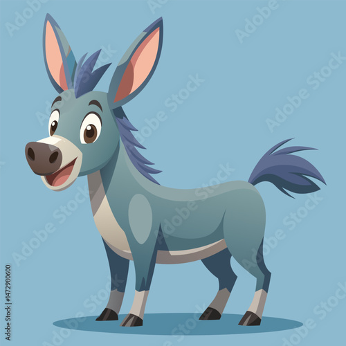 Animated Donkey Cartoon: A cheerful animated donkey with vibrant colors and charming expressions, embodying the essence of friendliness and playfulness, set against a clean backdrop.