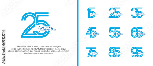 15, 25, 35, 45, 55, 65, 75, 85, 95, blue, white, anniversary, background, birthday, booklet, card, celebrate, celebration, certificate, congratulation, design, greeting, handwriting, illustration, invitation, leaflet, logotype, number, premium, set, symbol, template, vector, web, year, year
