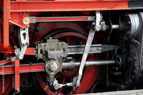 Ansicht einer alten Dampflokomotive, Details einer Lokomotive