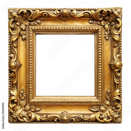 Antique gold frame isolated on transparent background