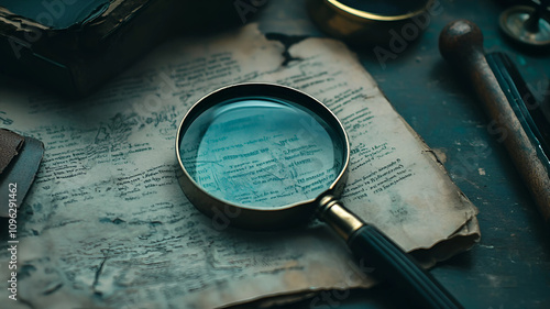 vintage, magnifying glass, antique, exploration, document, investigation, history, research, old paper, discovery, writing, mystery, tool, detective, retro, sharpened, detail, study, analysis, handwriting, curiosity, ancient, historical, heritage, cognition, exam, parchment, search, closeup, collector, intellectual, scholar, old-fashioned, classic, nostalgic, learning, artifact