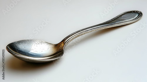 Antique silver spoon on white background, simple studio shot, perfect for food or restaurant menus.