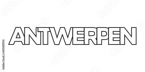 Antwerpen in the Belgium emblem. The design features a geometric style, vector illustration with bold typography in a modern font. The graphic slogan lettering.