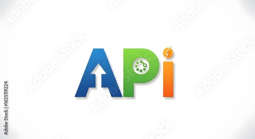 API Logo Concept with Upward Arrow and Energy Symbol