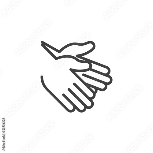 applause, hand, gesture, applause, icon, line, outline, linear, vector, logotype, pictogram, symbol, signs, clip art, design, illustration, thin, editable, graphic, simple, pixel, honed, success, congratulation, support, appreciation, approval, human, greeting, give, shake, arm, 2