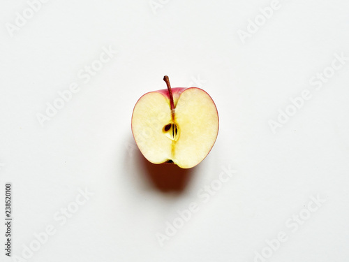 apple, fruit, object, food, colours, still life, still, life, sliced, half, 1, peel, no one, face, red, closeup, isolated, slice, background, fresh, healthy, sweet, cut, bright, macro, single, freshness, vibrant, stem, vegetarian, raw, ripe, clipping, yellow, natural, health, nobody, lifestyle, diet, nourishment, snack, health care, top, view, up high, minimalism, white