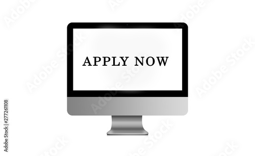 Apply now hiring new business apply here on laptop isolated on white background £D illustration