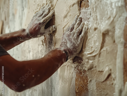 plastering, wall, construction, hand, work, renovation, repair, material, texture, white, application, craftsmanship