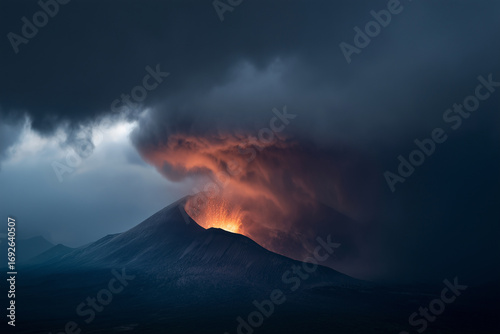 volcano, eruption, lava, cloud, mountain, dusk, landscape, nature, adventure, exploration, fire, smoke, molten, atmospheric, geologic, terrain, activity, danger, sky, glowing, ash, rugged, beauty, raw, wilderness, travel, science, natural phenomenon, dramatic, heat, force, earth, stunning, scenery, wildlife, environment, risk, climb, journey, thrill, active volcano, night time, horizon, natural beauty