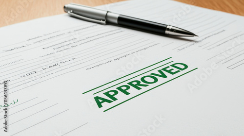 Approved mortgage document with pen for Mortgage approval process documents concept