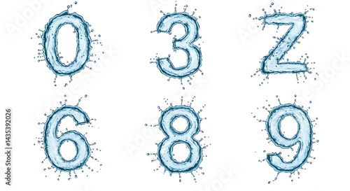 number, digit, zero, three, 6, 8, 9, 2, water, splash, spray, font, typeface, design, illustration, artwork, graphic, blue, light, style, texture, pattern, abstract, cold, element, icy