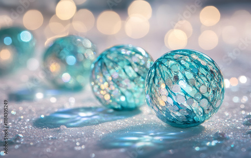 Aquamarine glitter with fresh sparkles and dynamic bokeh orbs.