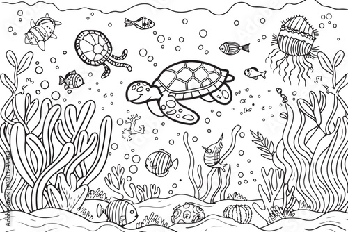 Aquatic Scene Coloring Page Bundle