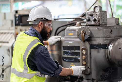 Arabic engineer man repair machine in steel metal manufacturing factory plant industry. technician worker maintenance check quality machine.
