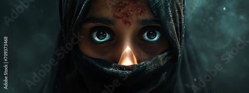 arabic, female, horrified, good, diversity, beautiful, plain, concept, mouth, space, copy space, femininity, us, astonish, horizontal, strong, expression, astounded, girl, individual, lady, distress, surprise, expressive, nose, america, sudden, background, fright, heading, religious, stare, shock, banner, reaction, alarm, cultural, muslim, facial, dismay, multicultural, terror, generative, ai