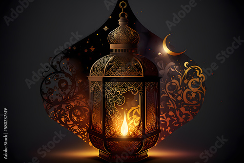 Arabic lantern, Ramadan kareem background made with Generative AI