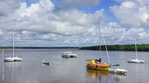 Aracaju/Brazil: sailboats and ships parked at the river bay