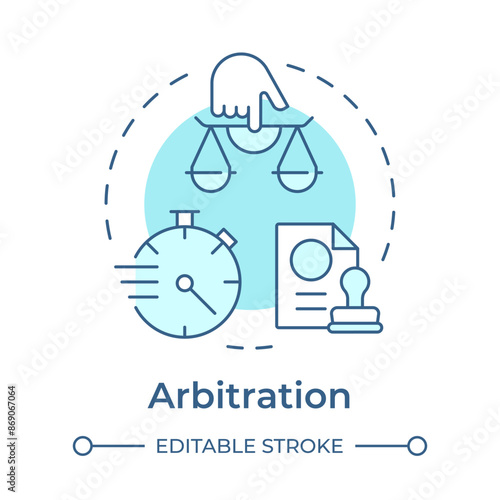 Arbitration soft blue concept icon. Employment contract, time management. Productivity control. Round shape line illustration. Abstract idea. Graphic design. Easy to use in infographic, presentation