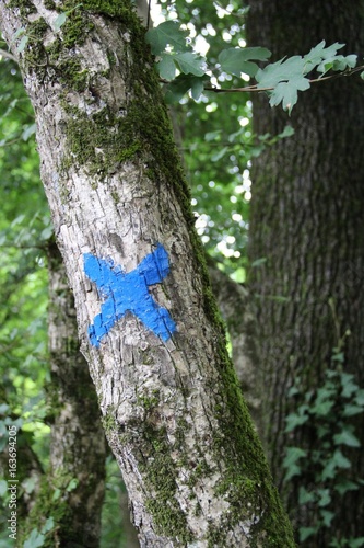 shaft, shaft, hike, sport, race, walk, walk, nature, rind, blue, hint, gesture, signalling, signal, paint, indicating, marking, mark, forest, forest, foam, leisure, meaning, change, change, relax, acknowledgment, symbol, directional