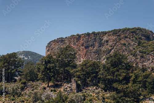 Archaeological remains of the Lycian rock cut tombs. Lycian Tombs. Unique ancient necropolis. Ancient Greek burials. Tourism and attractions. The ancient Greek city of Pinara, Turkey