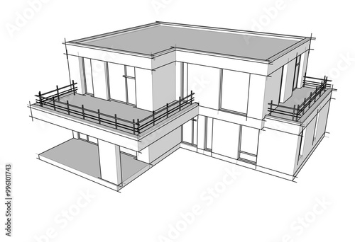 Architectural drawing vector 3d illustration