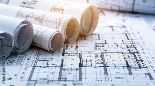 Architectural plan and blueprints for a new office building