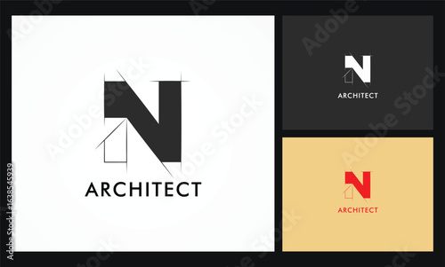 Architectural project N letter logo, technical draw style alphabet. Geometrical typography. Wireframe letters, typographic design with draft strokes for architecture logo. Isolated vector typeset