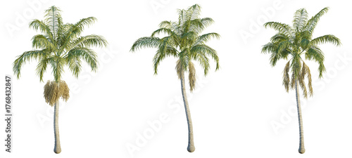 Archontophoenix cunninghamiana tree cutout, front view, transparent background, isolate, Tropical palm trees create a sunny seaside vibe for your designs