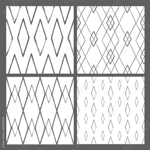 Argyle patterns from brush strokes. Set of vector diamond backgrounds
