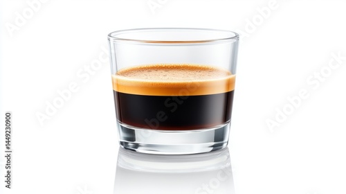 Aromatic coffee beverage in a glass, refreshing drink on white background