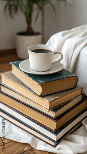hot drink, cup, book, stack, old, plant, bed, read, literature, study, education, cognition, vintage, antique, retro, paper, page, cover, learn, wisdom, story, novel, history, classic, library, collection, textbook, school, college, university, learning, reading, relaxation, hobby, lifestyle, home, decor, table, desk, indoor, still, life, object, arrangement, wooden, surface, ceramic, beverage