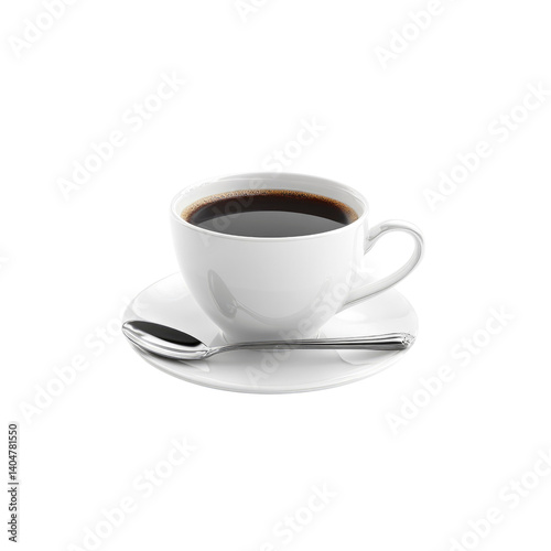 hot drink, black coffee, cup of coffee, coffee cup, saucer, spoon, hot drink, caffeine, beverage, coffee break, coffee time, espresso, coffee bean, aroma, fragrance, smell, drink, hot beverage, refreshment, energy, stimulant, white cup, elegant, simple, minimalist, clean, isolated, studio shot, closeup, macro, food