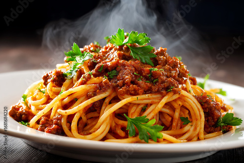 Aromatic Steam Rises from a Hearty Plate of Spaghetti Bolognese with Rich Ragu and Fresh Parsley