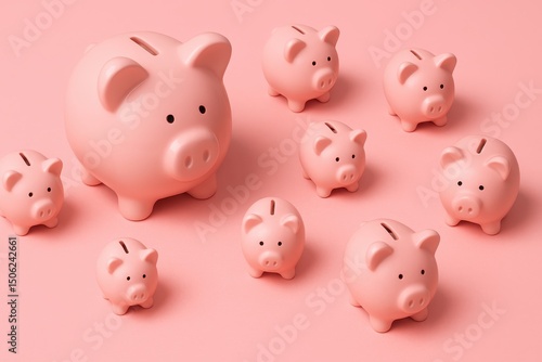 Array of Pink Piggy Banks on a Pink Background, Personal Savings and Investment Concept