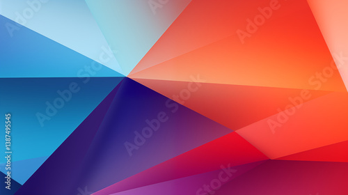 Arrière-plan et fond de coloré. Bleu, rouge, orange, jaune... Formes géométriques en mouvement. Dégradé, couleurs vives. Espace vide pour conception et création graphique