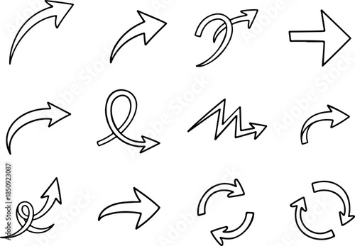 arrow, direction, vignetting, hand-drawn, pointer, editable, lead, visual, clip art, guide, mark, aim, thunder, curve, refresh, objective, artistic, idea, graphic, forward, basic, twirling, movement, navigation, point, drawing, arrow, communication, user, update, shaft, bow, pointing, isolated, archer, interface, flow, curly, scribble, way, cycle, feather, shape, rotate, cartoon, electricity, monochrome, set, white