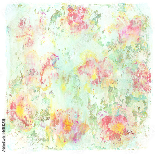 Art Abstract color acrylic and watercolor monotype painting. Gel printing plate. Canvas texture background. Isolated on white.