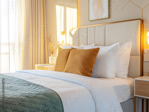 interior, bedchamber, bed, hotel, room, pillow, furniture, lamp, home, luxury, comfortable, design, house, bedding, apartment, mattress, light, sheet, sleep, headboard, decor, pillow, motel, nobody, decoration