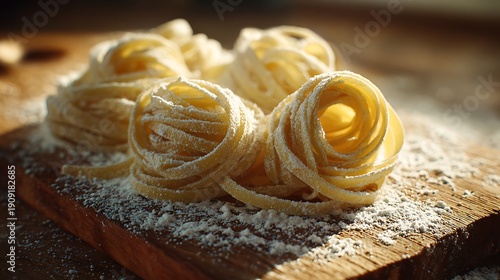 Artfully Arranged Raw Tagliatelle Pasta / 芸術的に並べられた生のタリアテッレ・パスタ