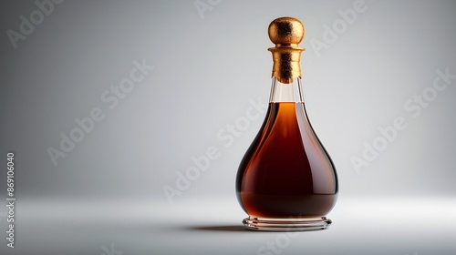 Artfully Crafted Brandy Bottle with Gleaming Golden Cap on Pristine White Studio Background