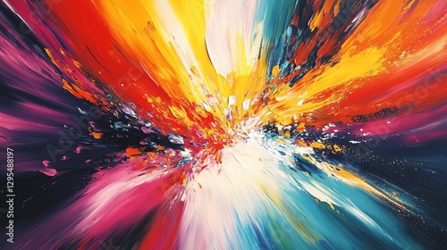 Artist s hand applying vibrant brush strokes on a colorful canvas, in the midst of creating abstract art, capturing the essence of creativity in motion