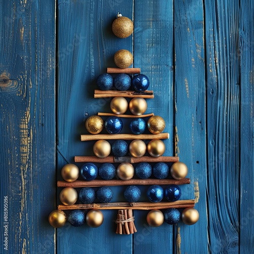 christmas tree, decoration, blue, gold, cinnamon, artistic, ball, christmas, creative, holiday, ornament, festive, handcraft, design, innovative, rustic, merry, seasonal, original, bricolage, decorative, tradition, cinnamon stick, winter, celebration, cheerful, craft, unique, spice, warmth, homely, fragrant, assembly