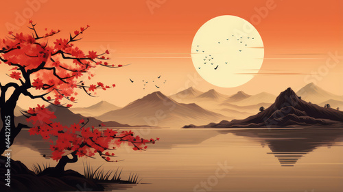 Artistic Japanese Cherry Blossom Landscape